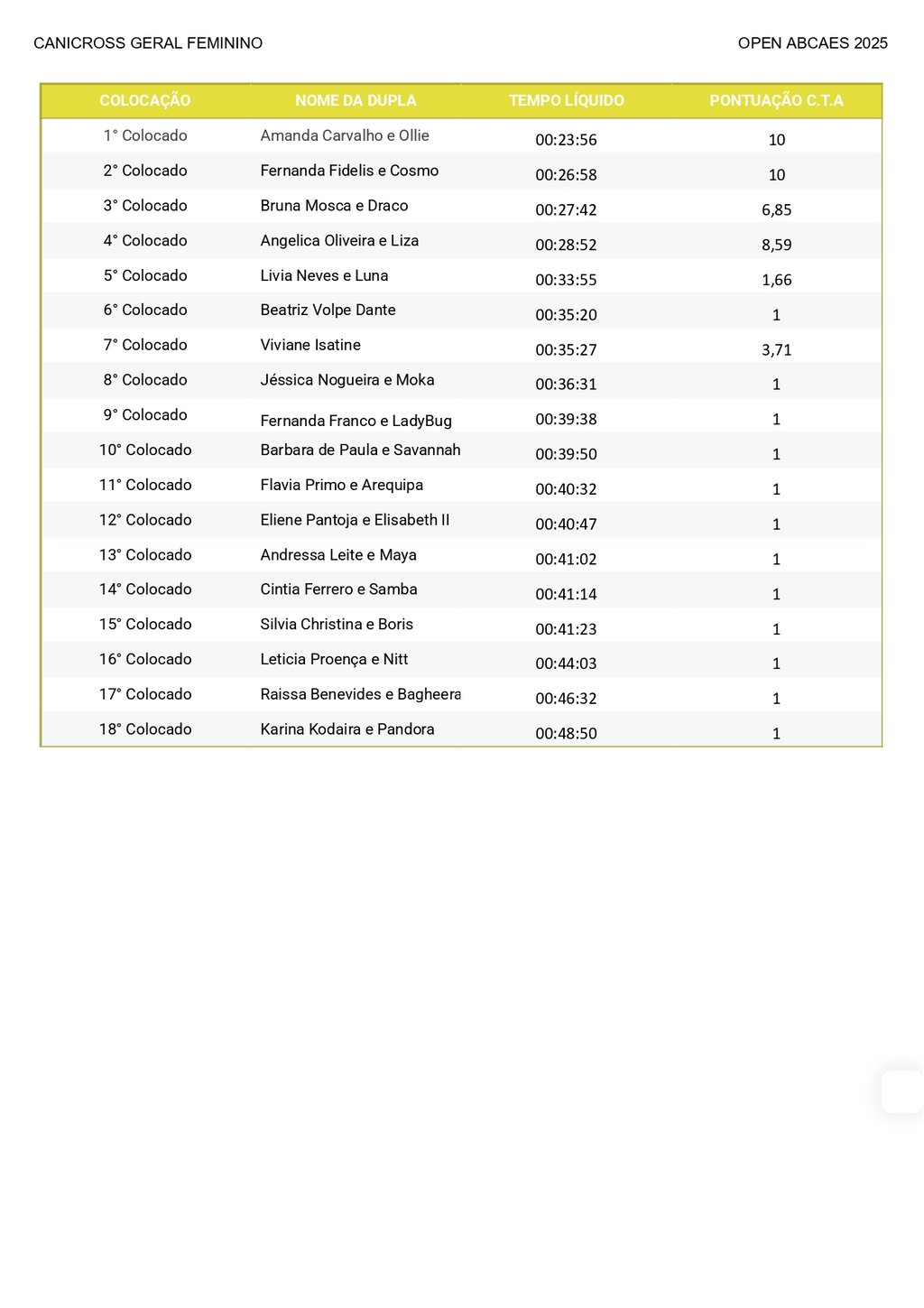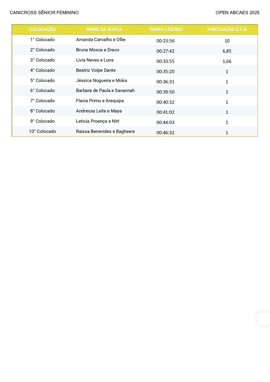 Canicross Sênior Feminino