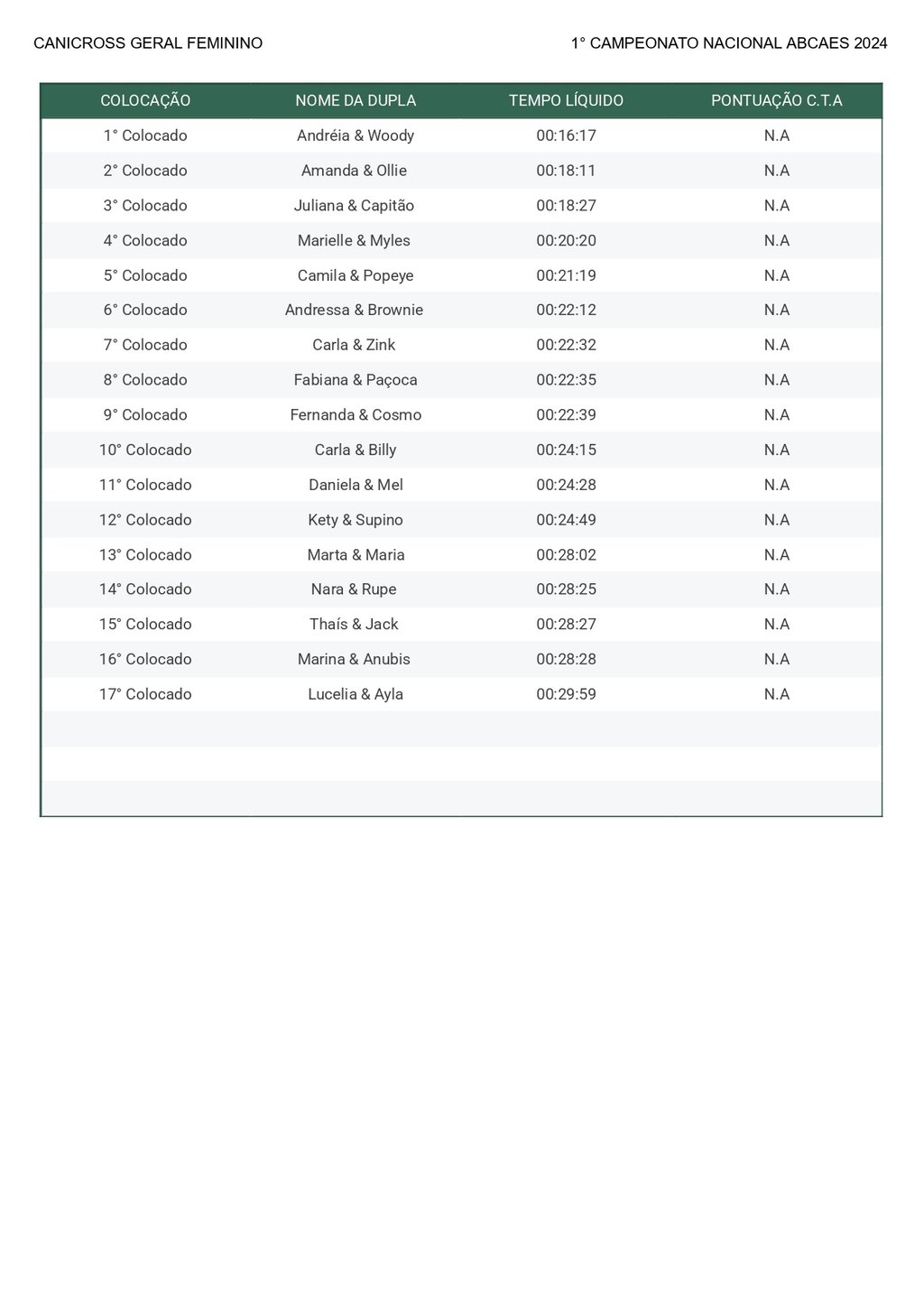 Canicross Geral Feminino