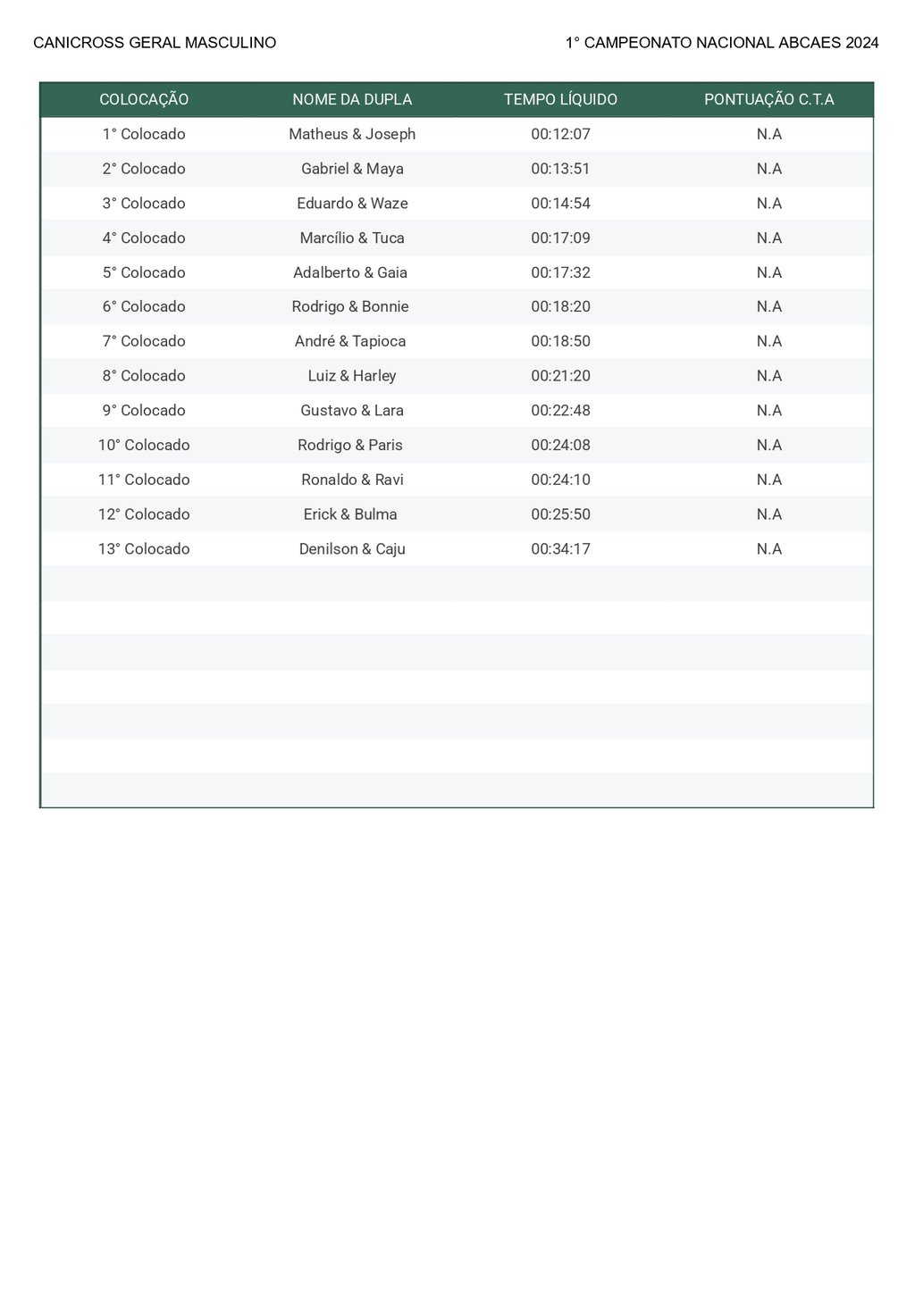Canicross Geral Masculino