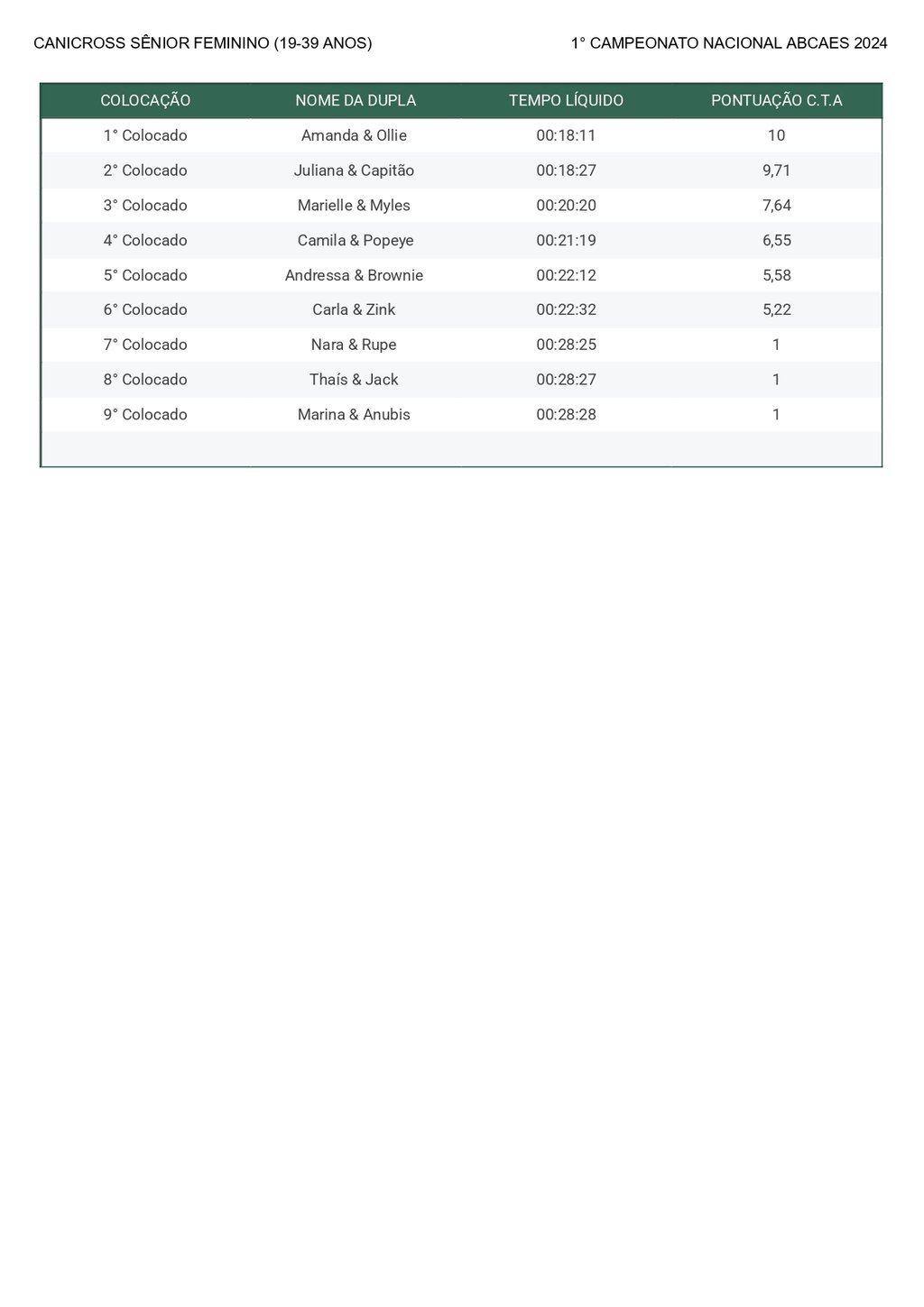 Canicross Sênior Feminino