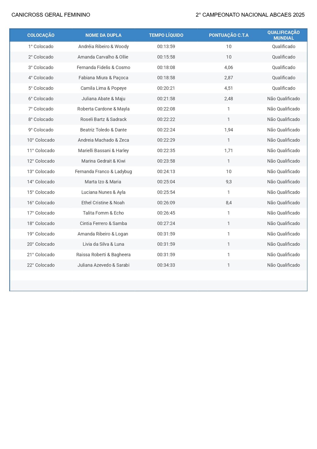Canicross Geral Feminino