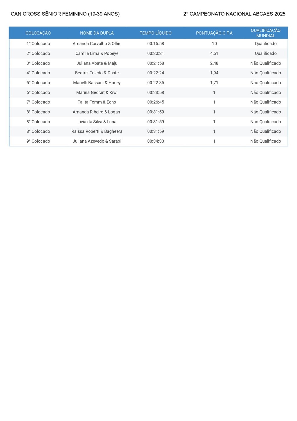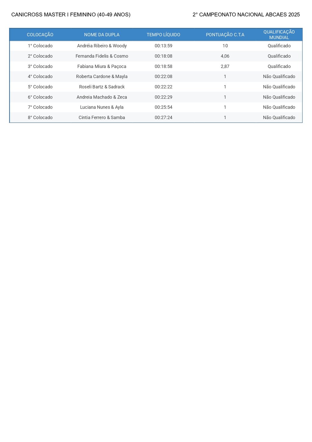 Canicross Sênior Feminino