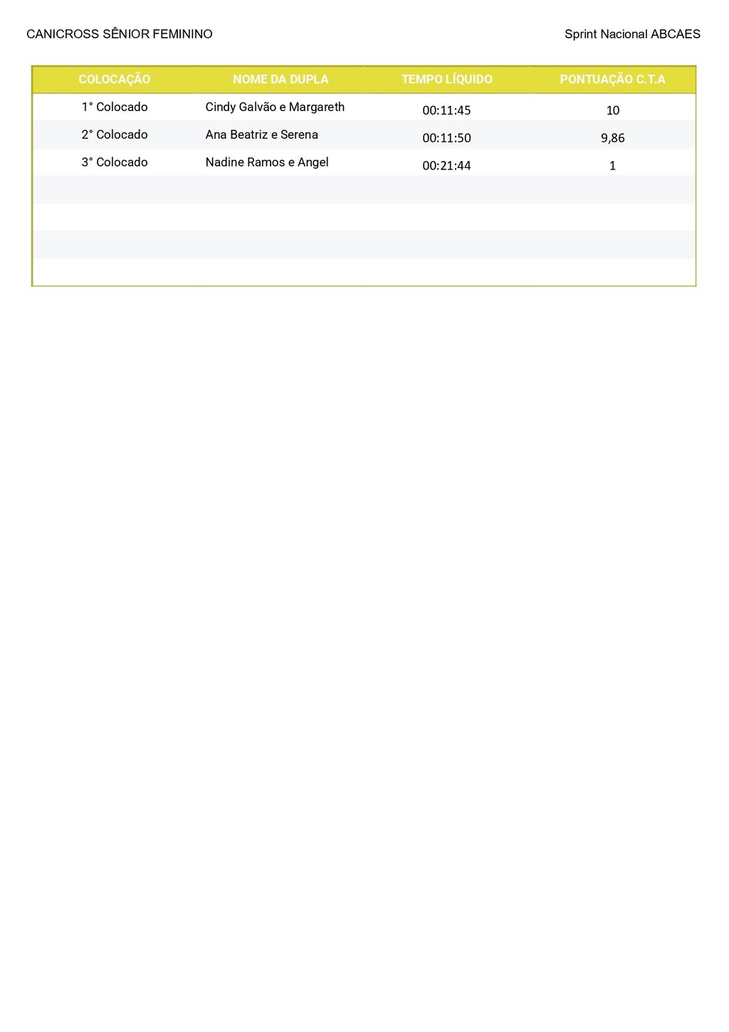 Canicross Sênior Feminino